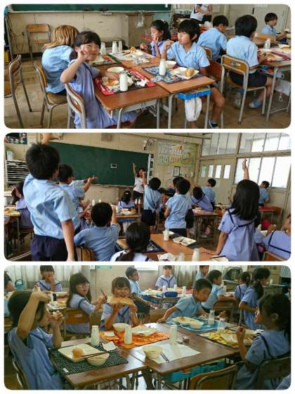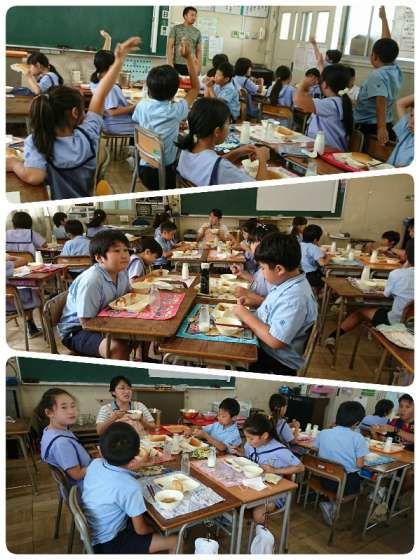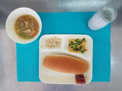 今日の給食は、豚肉と野菜の煮もの、チヂミ、もやしの甘酢あえ、パン、いちごジャム、牛乳でした。チヂミは、子ども達に好評でした。、豚肉と野菜の煮ものは、つゆにしっかりとつかった厚揚げが、おいしかったです。 (^◇^)