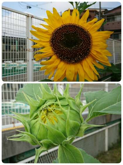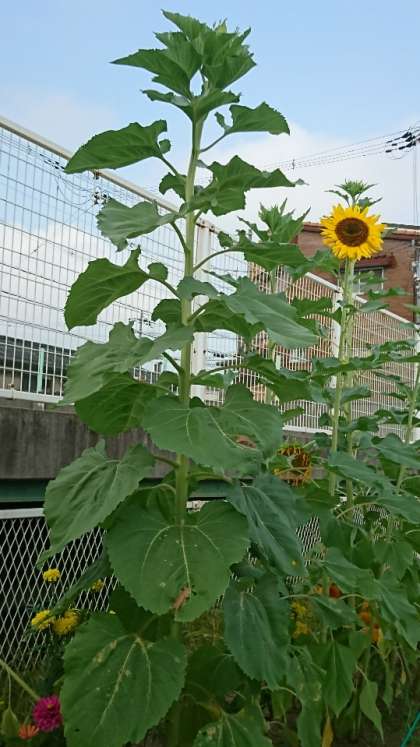 小花の方のヒマワリと比べ、つぼみも大きくて迫力です。種もたくさんとれそうです。