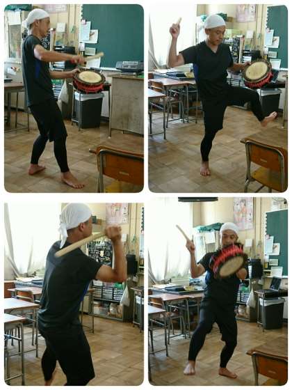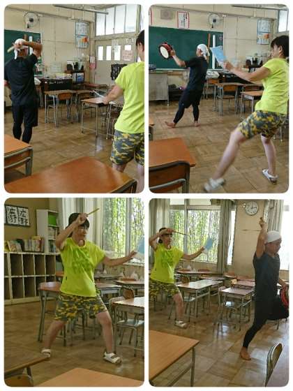 速いテンポに遅れないようにリズムをとって太鼓を打つ練習をしました。これから夏休み中に仕上げていきたいです。