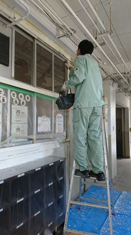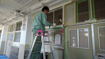 真っ白に塗られていく壁を見ていると、「少しでもきれいな環境で学んでもらいたい。」という管理作業員さんの思いが伝わってきます。