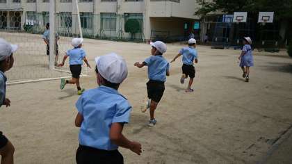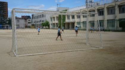 いきいき活動に来ている子ども達が10時半ごろ、元気よく運動場に飛び出してきました。サッカーやおにごっこ、一輪車など、広々とした運動場を走り回っていました。