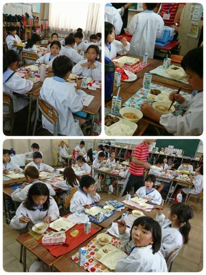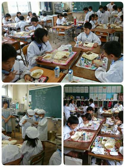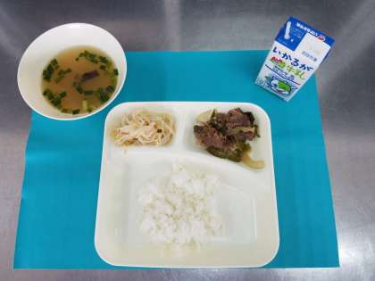 今日の給食は、プルコギ、トック、もやしの甘酢あえ、ご飯、牛乳でした。プルコギは、しょうゆ、しょうが、にんにく、コチュジャン、ごま油などでしっかりと下味がついていて、子ども達はもりもり食べていました。トックは、かまぼこサイズのおもちが入っていて、とてもおいしかったです(^◇^)