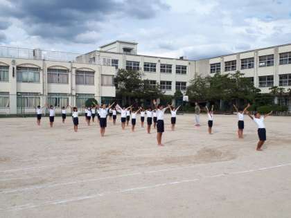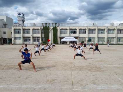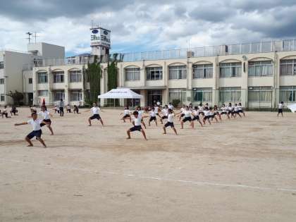 昨日の6時間目、初めて応援団の子ども達が運動場で練習しました。