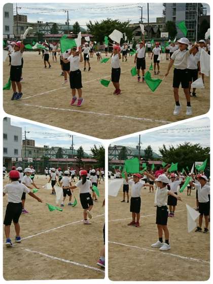 ダンス「Good Timeを君と♪」は、1曲目にフラッグを2本持って踊ります。旗の動きがだんだんそろってきて、格好よくなってきています。