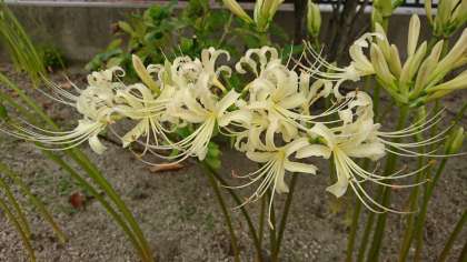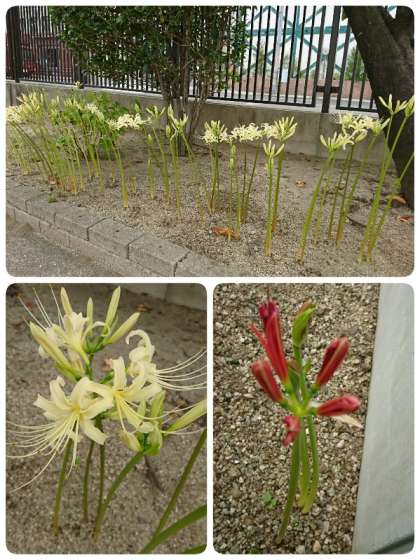 9月14日(金)のホームページでお知らせしていた花が、きれいに咲きました。日曜日、学校に来たときはまだ咲いていませんでしたが、今朝花だんを見に行くと「白色のヒガンバナ」が見事に咲いていました。赤色のつぼみもあるので、しばらくの間、赤と白のヒガンバナが楽しめます。(*^_^*)