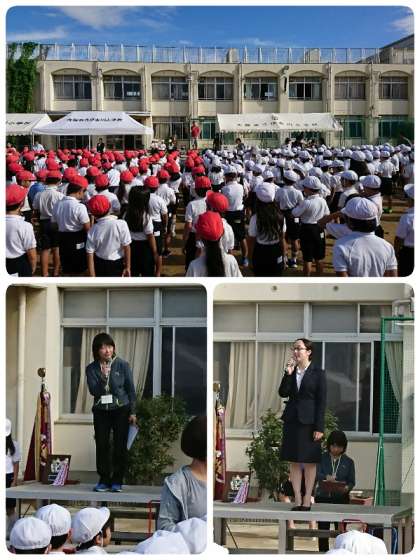 練習の前に、昨日から教育実習に来ている実習生が子ども達にあいさつをしました。