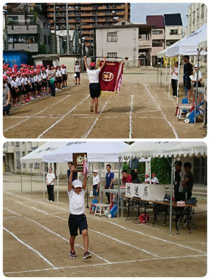 全体練習では、開会式や閉会式の流れを確認し、校歌とラジオ体操の練習をしました。