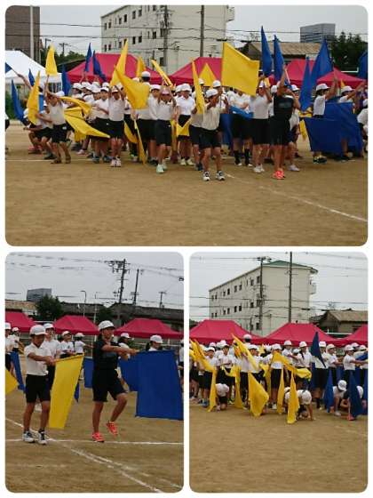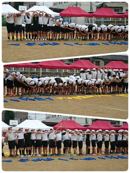 6年生の集団演技は、子ども達のかけ声ときびきびした動きがそろってきて、迫力が出てきました。今日はビデオ撮影をした後、自分たちの動きを見てさらに動きをよくしようと取組んでいました。