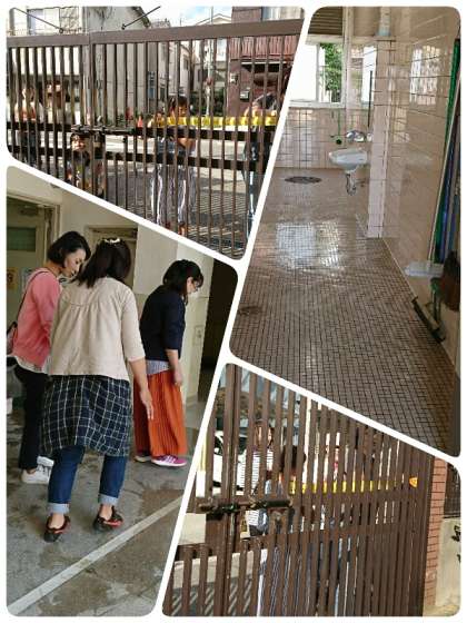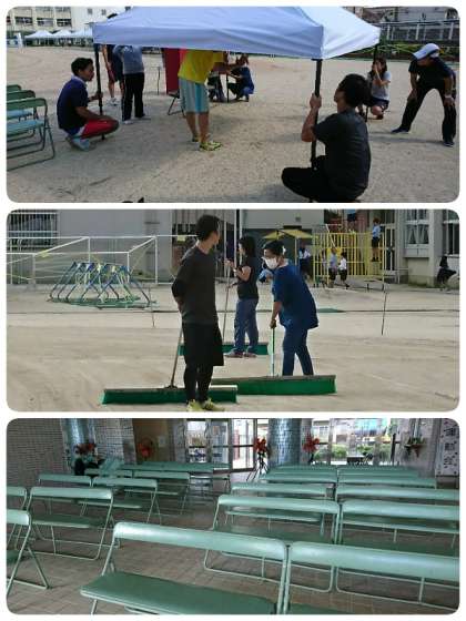 PTAの方もたくさんお手伝いに来てくださいました。講堂やトイレ掃除、外周のテープ張りなどをしていただきました。本当にいつもありがとうございます。