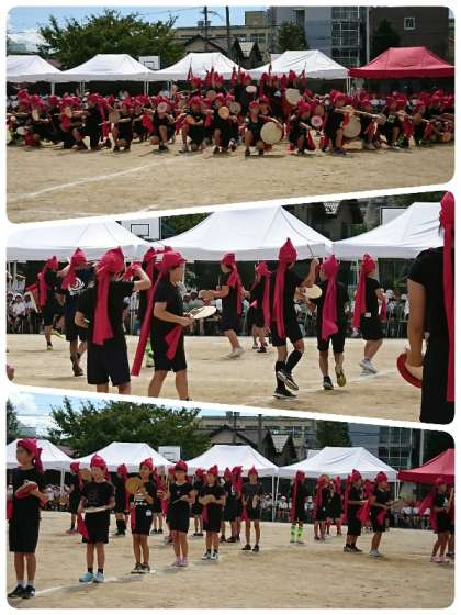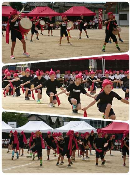 子ども達のかけ声はぴったりそろい、太鼓の音もぴったりそろい、最高の演技でした。