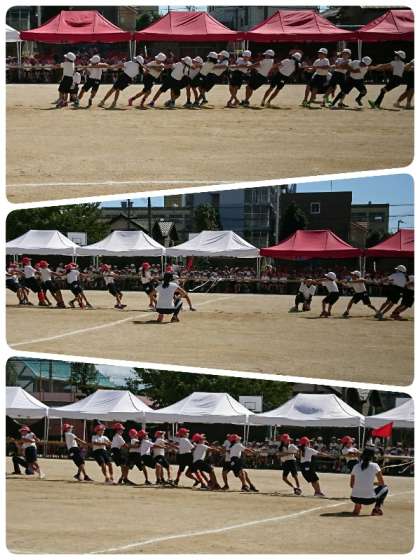力いっぱい綱をひっぱりました。