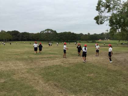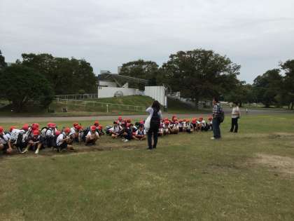 広場で遊ぶことになりました。子ども達は走り回っています。(^_^)v