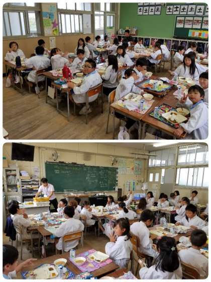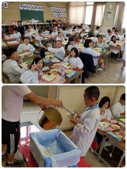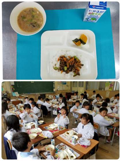 今日の給食は、もずくと豚ひき肉のジューシー、みそ汁、焼きかぼちゃの甘みつかけ、ご飯、牛乳でした。もずくと豚ひき肉のジューシーは、ご飯にかけて食べました。子ども達にとても好評でした。焼きかぼちゃの甘みつかけは、とてもあまくておいしかったです。(*^-^*)