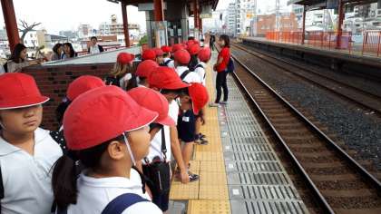 みんな約束を守って電車を待っています。