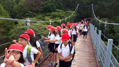つり橋を渡って、お楽しみのお弁当を食べる場所に移動しました。