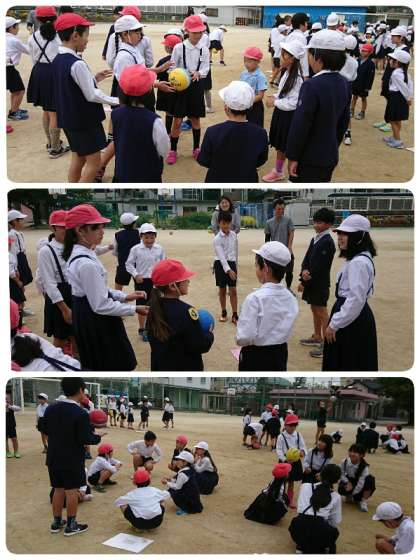 今日は、「ばくだんリレー」をしました。たてわり班で円になり、ボールをまわしていきます。合図があった時にボールを持っている人が、他の人の質問に答えていくゲームです。「好きな勉強は何ですか?」「好きな色は何ですか?」「得意なことは何ですか?」など質問していました。