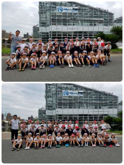 咲くやこの花館をバックに記念撮影です。