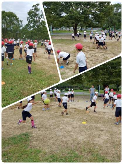 大芝生で、まずは、ドッジボール!