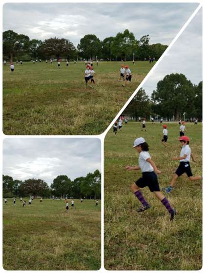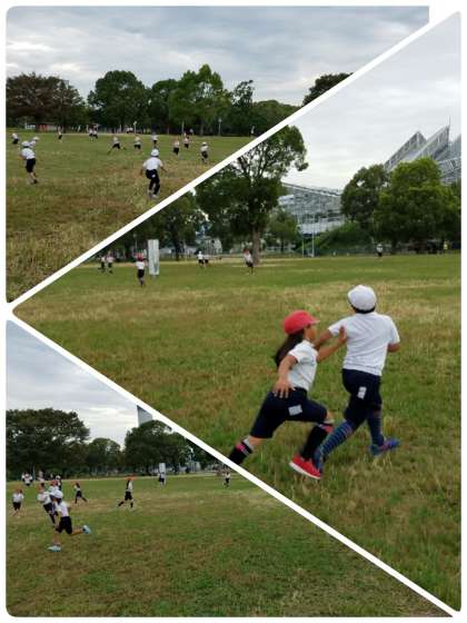 広い、広い芝生で走り回っています!