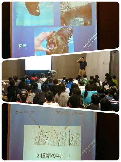 ラッコの2種類の毛をさわらせてもらいました。明日の水族館の見学が楽しみになりました。