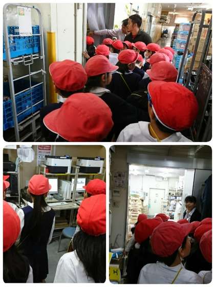 3年生がスーパーマーケットの見学に行ってきました。クラスごとに店内とバックヤードを見学しました。お店の方から普段は見ることができないバックヤードでのお仕事や設備、また売り場の工夫など、たくさん教えていただきました。
