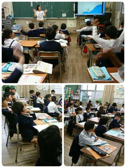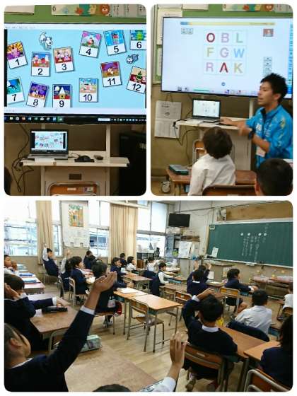 クラスによって多少違いはありますが、「曜日」や「月」の言い方も歌に合わせて楽しそうに歌っていました。少しずつアルファベットを読む学習も始まっています。