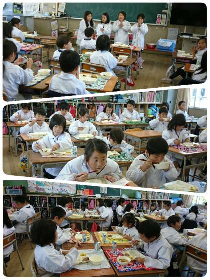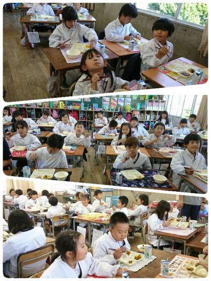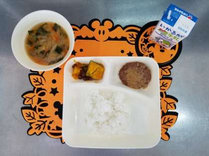 今日の給食は、和風おろしハンバーグ、みそ汁、かぼちゃのいとこ煮、ご飯、牛乳でした。和風おろしハンバーグは、大根おろしがハンバーグは、子ども達に大人気でした。みそ汁は、具だくさんで、かぼちゃのいとこ煮は、かぼちゃも小豆も甘くておいしかったです(*^▽^*)