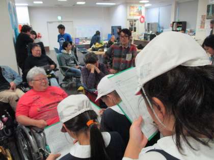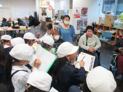 放課後、12月11日に行う「夢宙センターとの交流会」に向けて、4年生交流会実行員会のメンバーがオスカードリームにある「自立生活夢宙センター」に行きました。子ども達は、交流会を成功させる為に、夢宙センターの方に積極的に質問をして、メモをとりながら真剣に聞き取っていました。交流会までにあと1回聞き取りにいきます(^^)/