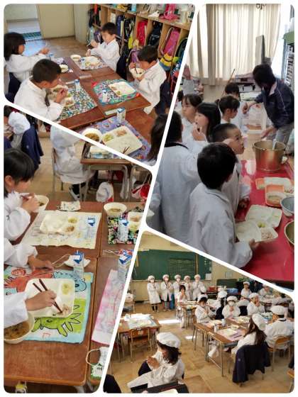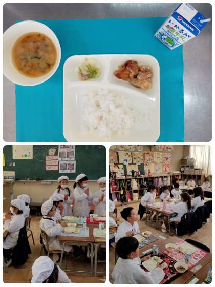 今日の給食は、鶏肉のしょうゆマヨネーズ焼き、なめこのみそ汁、キャベツのいためもの、ご飯、牛乳でした。鶏肉のしょうゆマヨネーズ焼きは、マヨネーズ味が子ども達に好評でした。なめこのみそ汁は、なめこのつるっとした食感がよく、おいしくいただけました(*^^)v