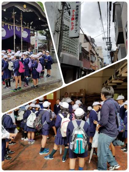 1組2組が、工場見学と商店街見学を交代しています(^.^)