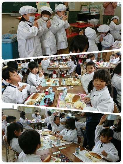 今日の給食は、ツナポテトオムレツ、スープ、きゅうりのバジル風味サラダ、黒糖パン、牛乳でした。ツナポテトオムレツは、ふんわりとしていました。ケチャップをつけて食べれることに子ども達は喜んでいました。きゅうりのバジル風味サラダは、さっぱりとしていて、おかわりをする子ども達が多かったです(*^^)v