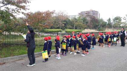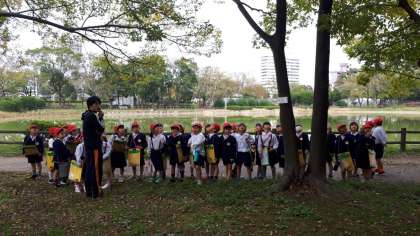生活科の学習で、「秋みつけ」に住之江公園へ行きました。秋の花や紅葉した木々を見たり、どんぐり拾いをしたりしました。「こんな大きなどんぐり見つけたよ」「黄色と赤色の葉っぱを見つけたよ」とうれしそうに教えてくれました。今日集めてきたどんぐりや葉を使い、土曜授業でマラカスやけん玉などを作る予定です。