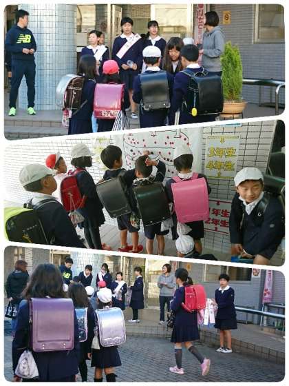 正門では、子ども達の元気な声が響いています。代表委員会の子ども達も大きな声で「おはようございます!」とお手本をみせています。