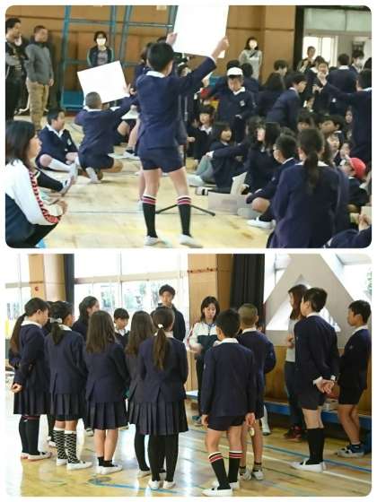 今日の児童集会は、○×クイズでした。クイズの内容は、今年度住吉川小学校に異動してきた教職員をもっとみんなによく知ってもらうためのものと、住吉川小学校にちなんだ問題でした。