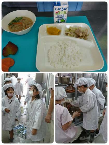 今日の給食は、豚肉とまいたけのいためもの、つみれ汁、かぼちゃういろう、ご飯、牛乳でした。豚肉とまいたけのいためものは、まいたけが食感のアクセントになっていました。かぼちゃういろうは、甘くて美味しかったです(*^-^*)