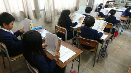 3−2では、国語の「はりねずみと きんか」のお話の場面ごとに起きたできごとをまとめていくという学習をしていました。みんなで本読みをするときに、全員がきちんと教科書を持って姿勢を正して読んでいました。見ていて気持ちよかったです。