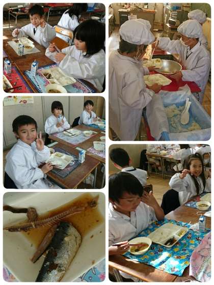 今日の給食は、いわしのしょうが煮、うすくず汁、高野どうふの卵とじ、ご飯、牛乳でした。高野どうふの卵とじは、高野どうふの甘さがちょうどよく、おいしかったです。うすくず汁は、とろみがあり、体をポカポカにするには、最高でした。ただ、今日のお天気では、暖かすぎたかなぁ(・・;)