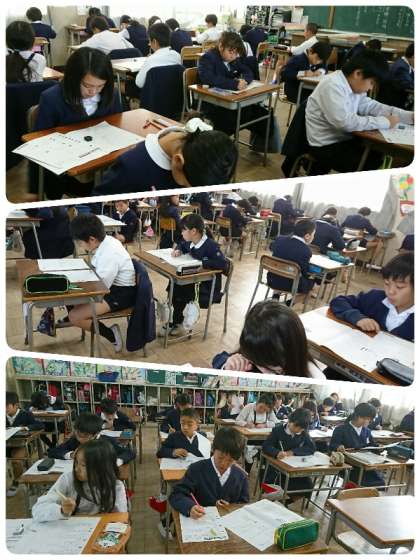 3年生以上の学年で、今日から大阪市小学校学力経年調査が始まりました。学年によって今日実施した教科は違いますが、どこの教室に入ってもとても集中して取組んでいました。どの教科も文章をしっかり読まないと解けない問題がとても多いです。