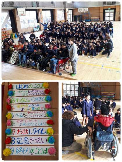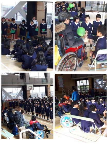 4年生が、夢宙センタースペースシャトル(自立生活センター)の方と交流しました。今日の交流会のために、4年生の実行委員が事前にセンターに出向き、打ち合わせも行っています。交流会では、クイズ、ゲームなどでたいへん盛り上がりました。また、ダンスや歌も披露し、喜んでいただけました。最後に、「お話タイム」で交流し、記念撮影をしました。交流会を通して、地域で障害がある方々の生活や願いを知ることができ、子ども達にとって有意義な会となりました。