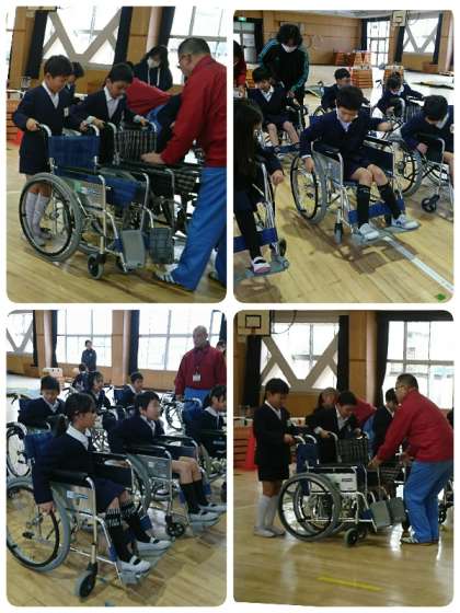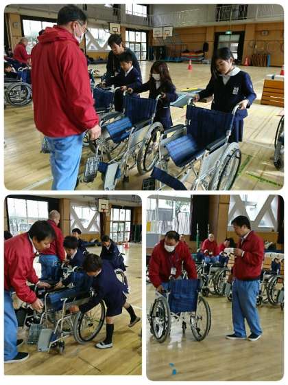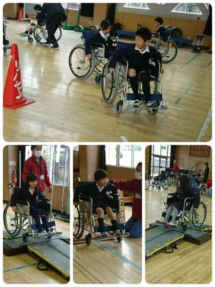 大阪市立心身障がい者リハビリテーションセンターの方に来ていただいて、3年生が車いす体験学習を行いました。