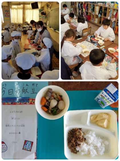 今日の給食は、卵どうふ、豚肉とさといもの煮もの、おかかなっ葉、ご飯、牛乳でした。「プリンみたい。」と言いながら、卵どうふをおいしそうに食べていました。おかかなっ葉も、「ご飯にふりかけるとおいしい。」といいながら食べていました(^◇^)