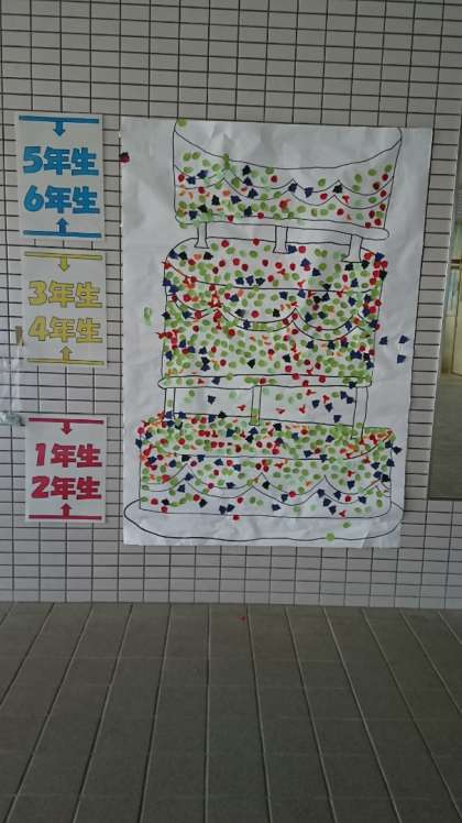 「あいさつ運動」のケーキもシールでいっぱいになってきました。