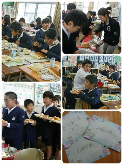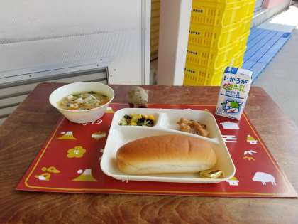 今日の給食は、鶏肉のオイスターソース焼き、糸寒天のスープ、チンゲンサイとコーンの中華あえ、パン、バター、牛乳でした。鶏肉のオイスターソース焼きは、ソースの味がよく、鶏肉をおいしく味わえました。糸寒天のスープは、豚肉やとうふ、たまねぎ、にんじん、もやし、にらなど、具がたくさん入っていて、あっさり味のスープでした(*'▽')