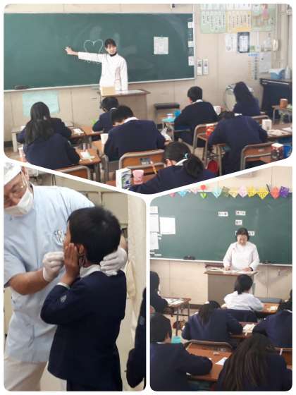 教室で歯のみがき方と虫歯予防についての話を聞いた後、保健室でフッ化物塗布を受けました。
