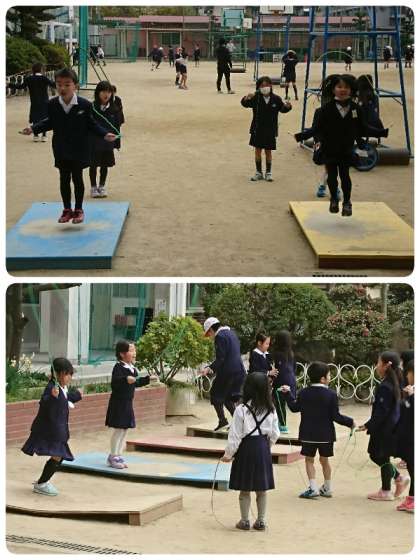 休み時間は1年生も楽しそうに跳んでいました。4月には何回かしか跳べなかった子どもも上級生の跳び方を日々見て学んでいるようで、1年生でも2重跳びを連続で跳べる子どもがどんどん増えてきています。縄跳び上手の住吉川小学校のよき伝統が受け継がれているように思います。(*^_^*)