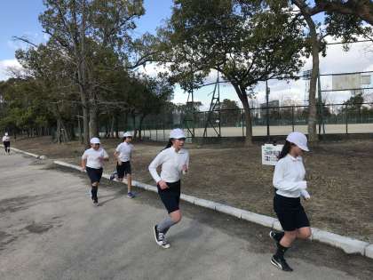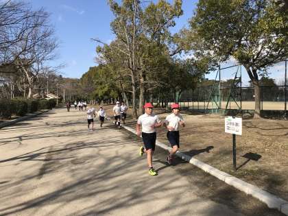 住之江公園で6年生が「持久走記録会」を行いました。今年は去年より半周長くして野球場を3周走りました。子ども達は、寒さに負けず、体育や体力づくり週間のかけ足タイムで走った成果を発揮していました。