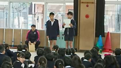 生活指導からは、登校時間の確認と集団登校をしようというお話、児童会からは、「卒業おめでとう集会」のお知らせがありました。