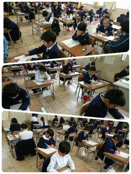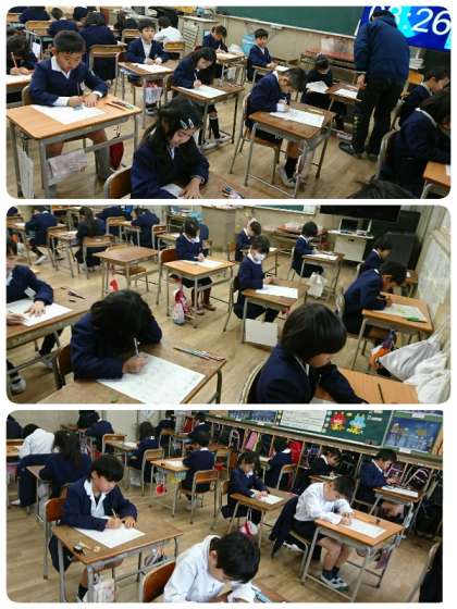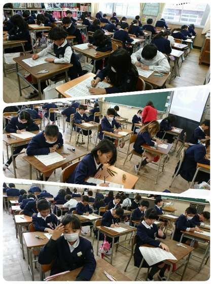 5時間目、今年度最後の「第3回住吉川漢字検定」を実施しました。いつものように校内放送で一斉に漢字検定を行いました。