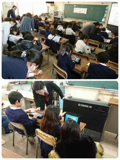 3年生は、1組では英語「What’s this?(これは何)」の単元を学習し、キーワードゲームや動物ビンゴゲームをしました。2組では、タブレットを使って、「プログラミング」の学習をしました。どうプログラムを組めば、答えにたどり着くか、悩みながら、色々な方法を考えていました。