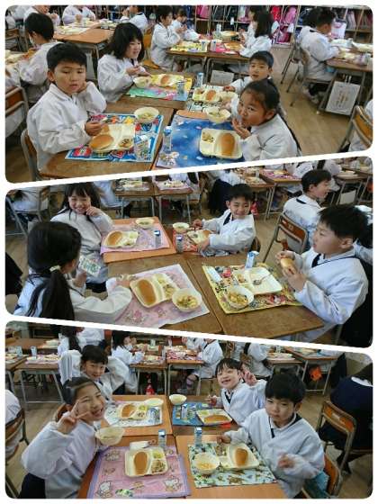 今日の給食は、中華おこわ、卵スープ、キャベツのオイスターソースいため、パン、マーガリン、牛乳でした。中華おこわは、もちもちとした食感で、栗も入っていておいしかったです。卵スープは、もやしやにんじん、チンゲンサイが入っていました。キャベツのオイスターソースいためは、さっぱりしていました(*^-^*)